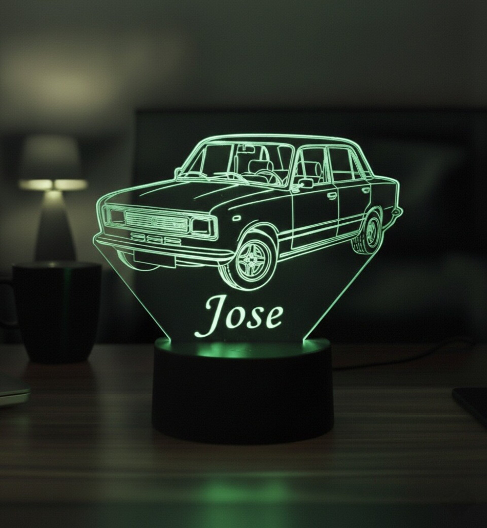 Lampara led 3D coche clasico Seat 124. Personalizable